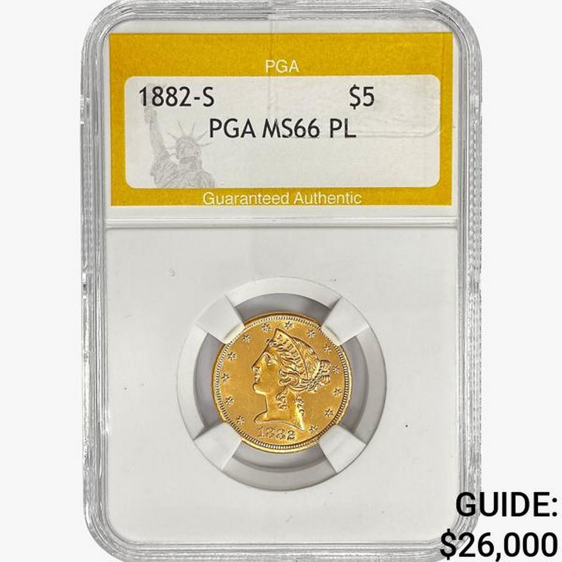 1882-S $5 Gold Half Eagle PGA MS66 PL
