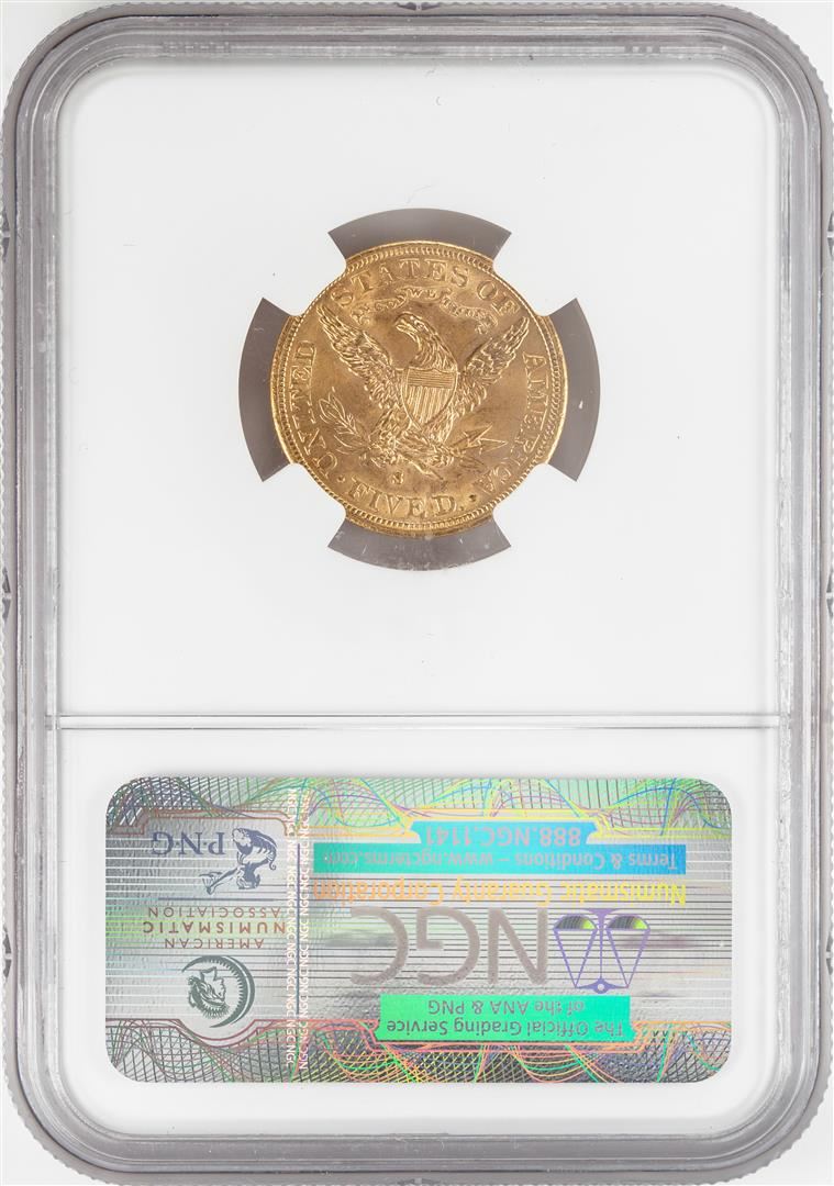 One 1882-S $5 Liberty Head Half Eagle Gold Coin NGC MS62. NGC Certified.