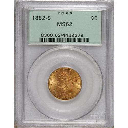 1882-S $5 MS62 PCGS. PCGS Population (355/294). NG