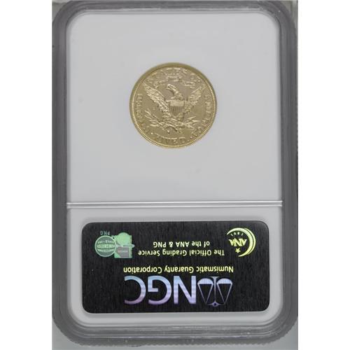 <B>1882-S<$5> MS63 Deep Mirror Prooflike NGC.</B></I> A glittering, needle sharp representative that possesses unusual depth of mirrored reflectivity. When one considers the obvious care taken in striking S-mint Morgans from this period, it stands to reason that gold coins would also boast these qualities. Only a few scattered field marks over the flashy yellow-gold surfaces serve to limit the grade. Census: 1 in 63 Deep Prooflike, 1 finer (3/06). <BR><BR><B>Important notice:</B> Heritage usually auctions material at the rate of 200-250 lots per hour. On some occasions eBay Live bid software or the Internet may not be able to keep up with the pace of the auction. We recommend placing a realistic absentee bid now as insurance to avoid disappointment. Occasionally the auctioneer may eliminate or reject an eBay Live bid, and the auctioneer may also reopen a lot after the close of the eBay live bidding (usually because we missed an audience bid), and may reject your bid even if it shows you as the winning bidder. By bidding via eBay Live, you agree that Heritage may award the lot to another bidder at its sole discretion under the circumstances described above or any other reasonable circumstances. Since eBay bids are not shown to us until we open the lot on the floor, we treat those bids just like floor bids. In most cases the floor responds before the eBay bid is presented to us, due to Internet lag time, so for consistency we have made it a policy that floor bids are always considered first over tie eBay live bids. Also please note that all Heritage lots purchased through eBay Live carry a 20% Buyer's Premium. Please make sure you read the Terms and Conditions before you bid. This lot is being auctioned in conjunction with a live floor auction by Heritage Galleries & Auctioneers. All final auction and invoice information will be supplied by Heritage Galleries & Auctioneers, and all other information should be considered preliminary. Lot:2808 <BR><BR><B>Winning Notification and Billing:</B> After the FINAL session in this auction is complete, Heritage will send e-mail and snail mail invoices. This process normally takes several days. All final auction and invoice information will be supplied by Heritage Galleries & Auctioneers, and all other information should be considered preliminary. <BR><BR>This auction will be conducted on a live auction floor and over the Internet through eBay Live. If you choose to place an absentee bid, please take a moment to <font color='#0000ff'><u><a href='http://pages.ebay.com/liveauctions/help/before/laabsentee.html'>learn how eBay Live absentee bidding works</a></u></font><font color='#000000'>