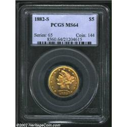 1882-S $5 MS64 PCGS. A sharply struck near-Gem that has glorious eye appeal due to its clean surface