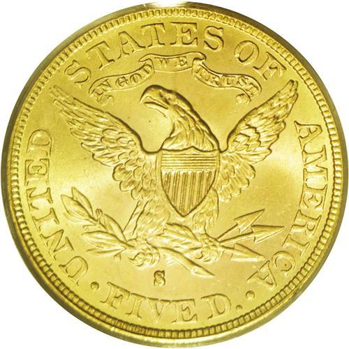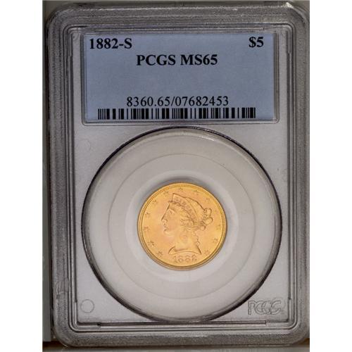 1882-S $5 MS65 PCGS. With 969,000 pieces struck, the 1 1882-S