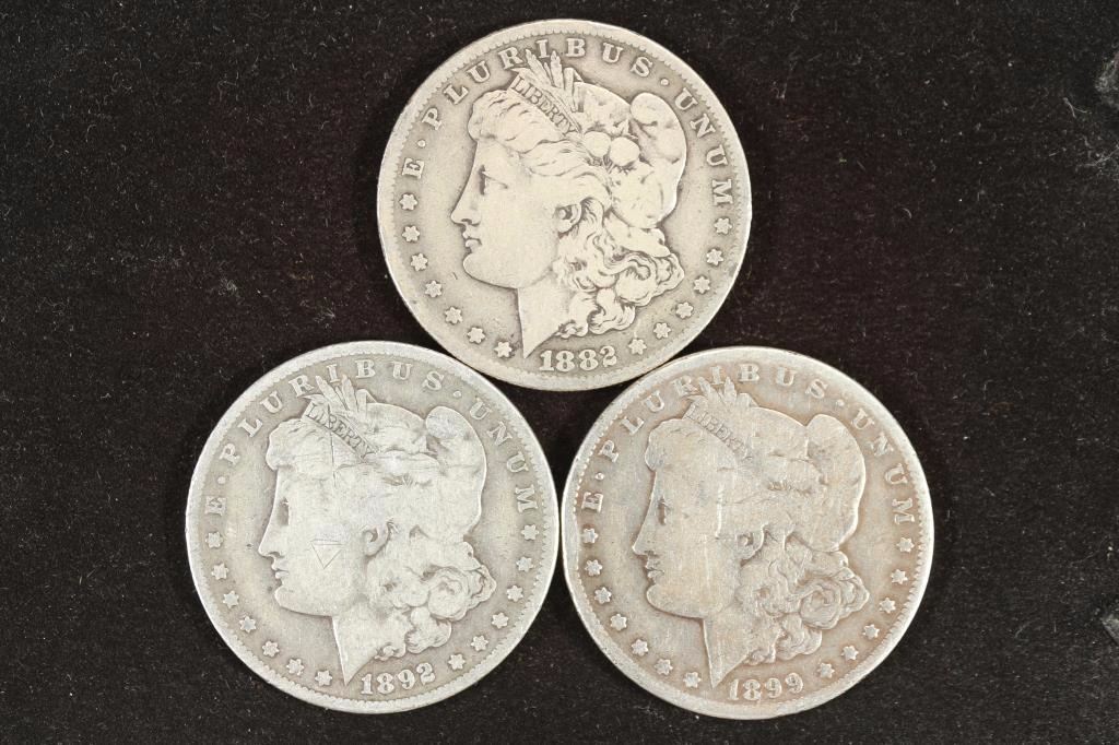 1882-S,92-O & 1899-O MORGAN SILVER DOLLARS