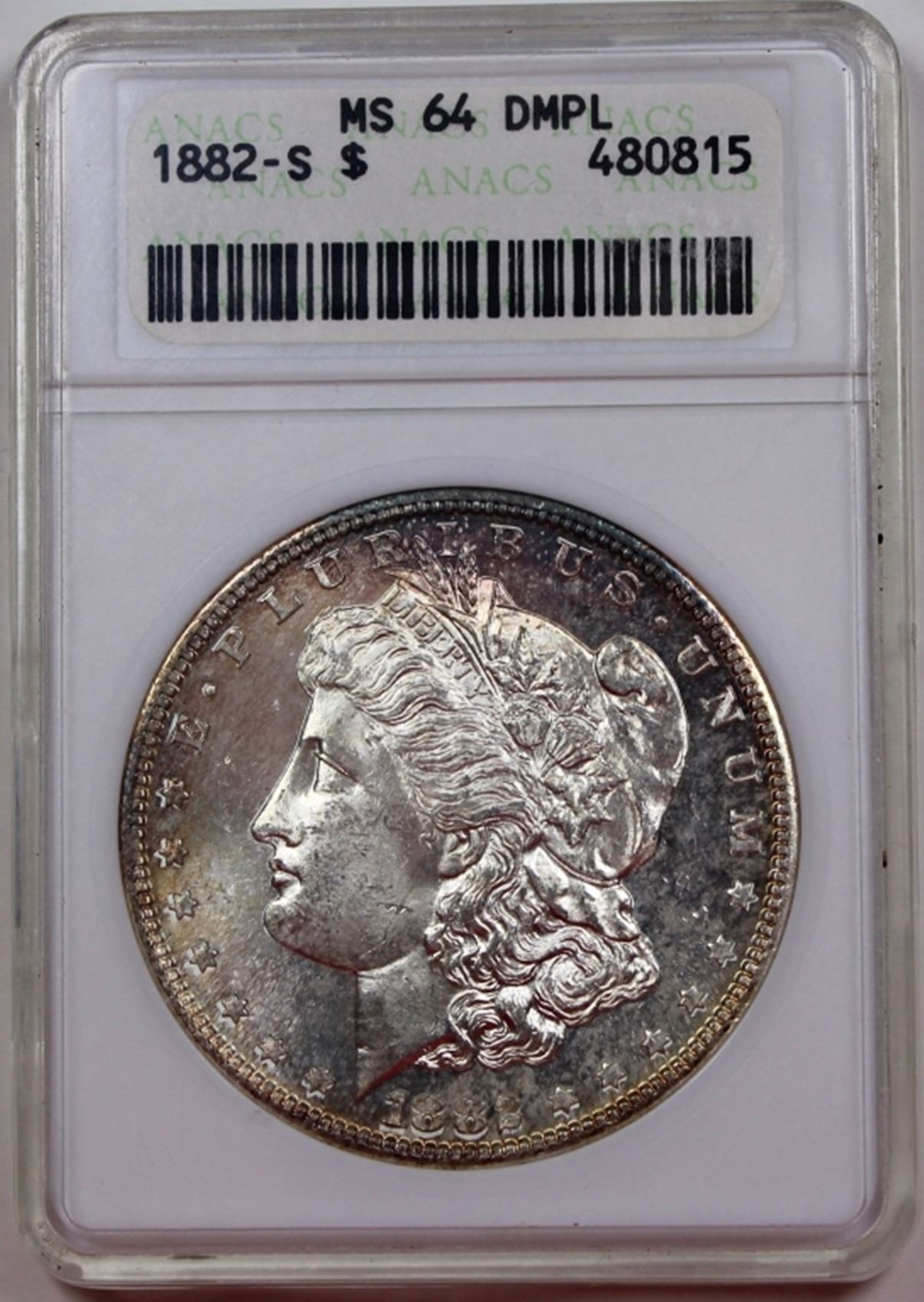 ANACS MS64 DMPL WHITE WITH A LITTLE EDGE RAINBOW COLOR, HAS CLAIMS TO MS65! ESTIMATE:$1000-$1100