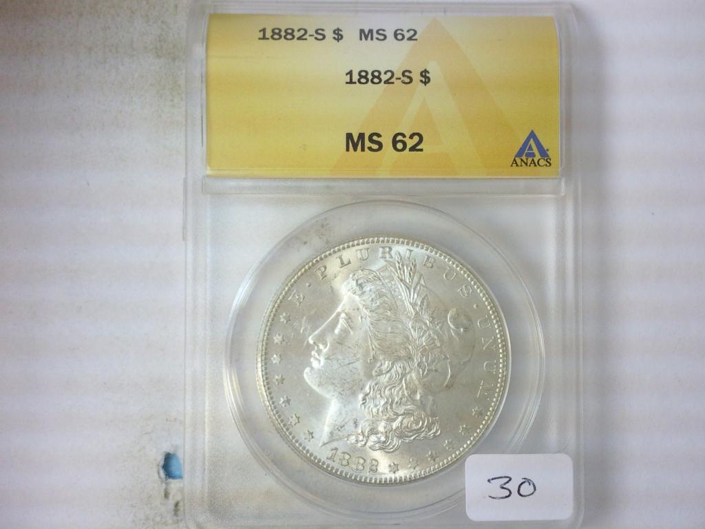 1882-S MORGAN SILVER DOLLAR ANACS MS62