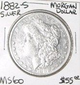 1882-S MORGAN SILVER DOLLAR RED BOOK VALUE IS $55.00 *RARE MS-60 HIGH GRADE* SILVER DOLLAR CAME OUT OF SAFE!! ***Coin, Currency & All Items Listed in this auction - Grades, Conditions and Values are not Safe Deposit Coins LLC Responsibilty. Grades, Condition and Values are determined by Consigner(s) & Buyers ONLY***