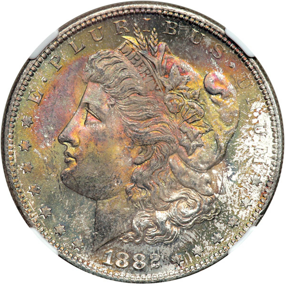 1882-S Morgan Dollar. NGC graded MS-65. Nice partial obverse toning (PCGS # 7140) .