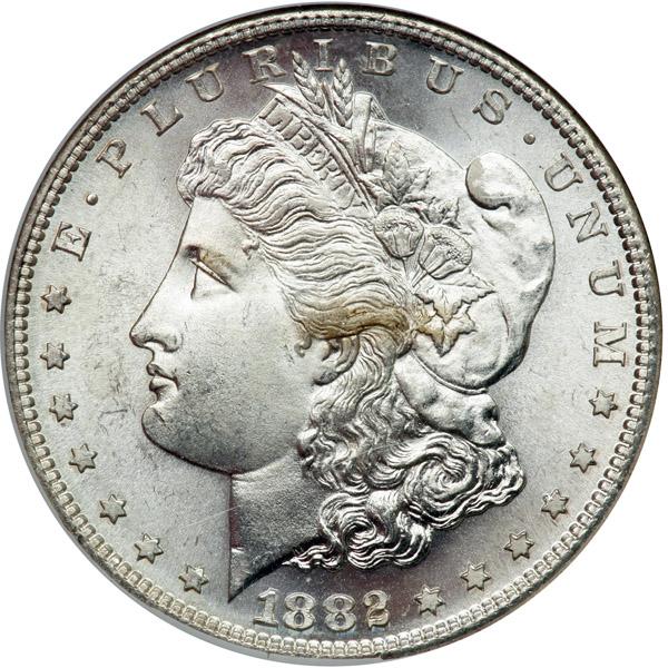 1882-S. NGC graded MS-67. Blast white and superb throughout; delight in the razor-sharp detail on both sides (PCGS # 7140) .