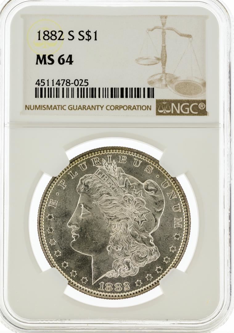 One 1882-S NGC MS64 Morgan Silver Dollar. NGC Certified.