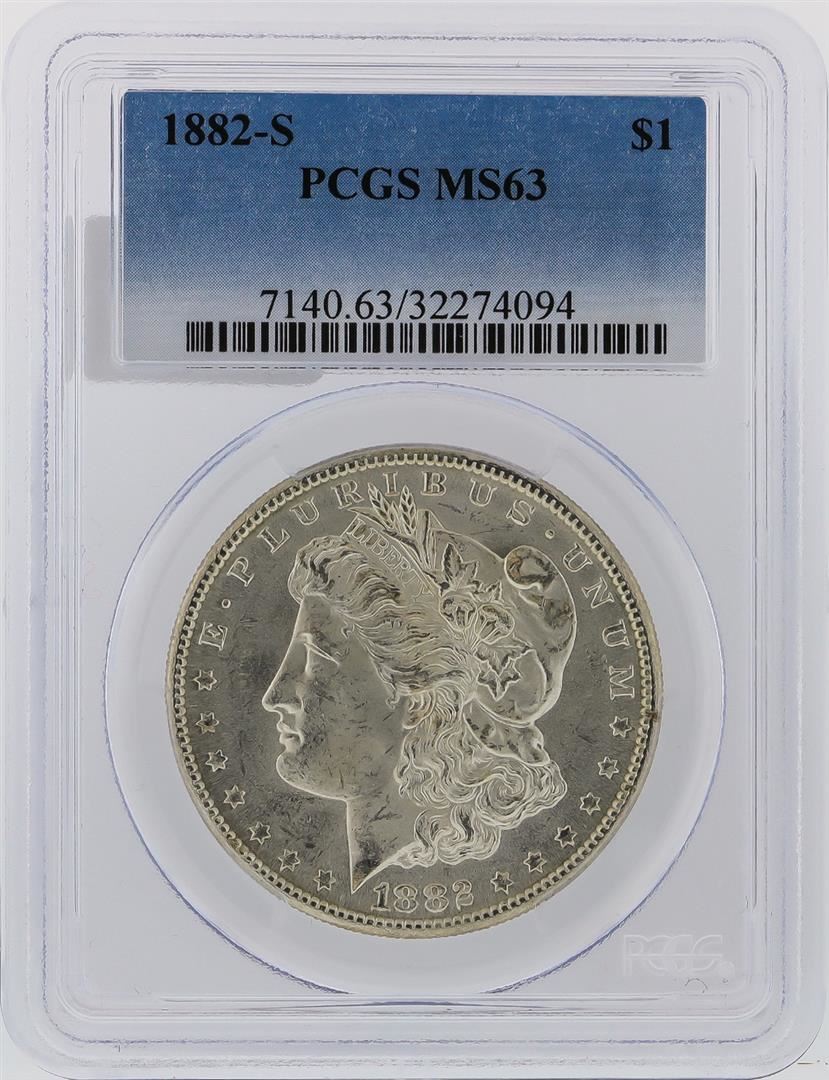 One 1882-S PCGS MS63 Morgan Silver Dollar. PCGS Certified.