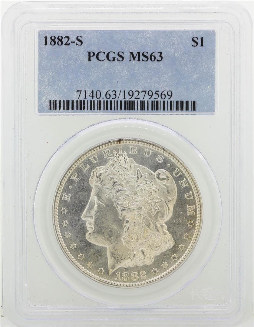One 1882-S PCGS MS63 Morgan Silver Dollar. PCGS Certified.