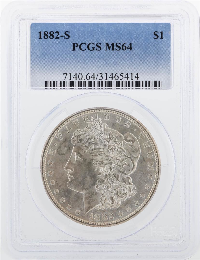 One 1882-S PCGS MS64 Morgan Silver Dollar.