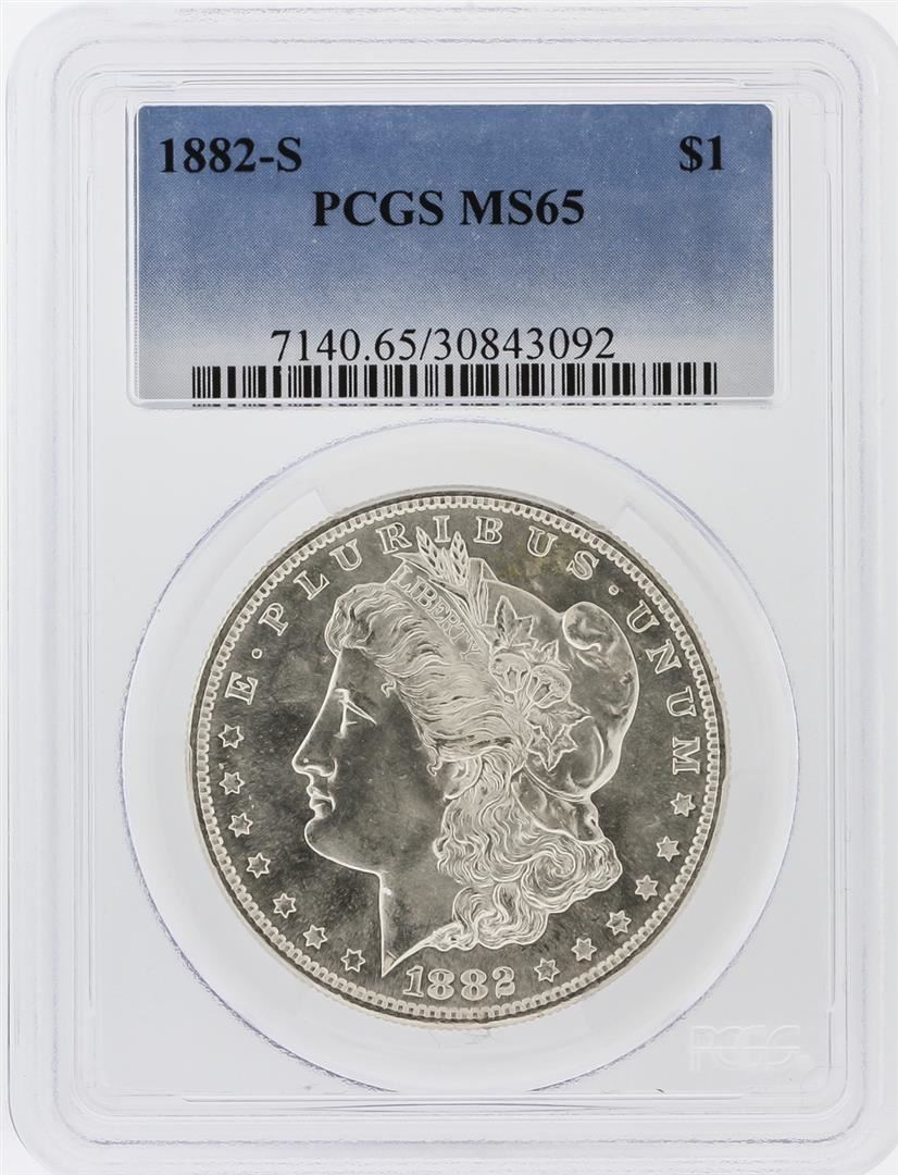 One 1882-S PCGS MS65 Morgan Silver Dollar. PCGS Certified.