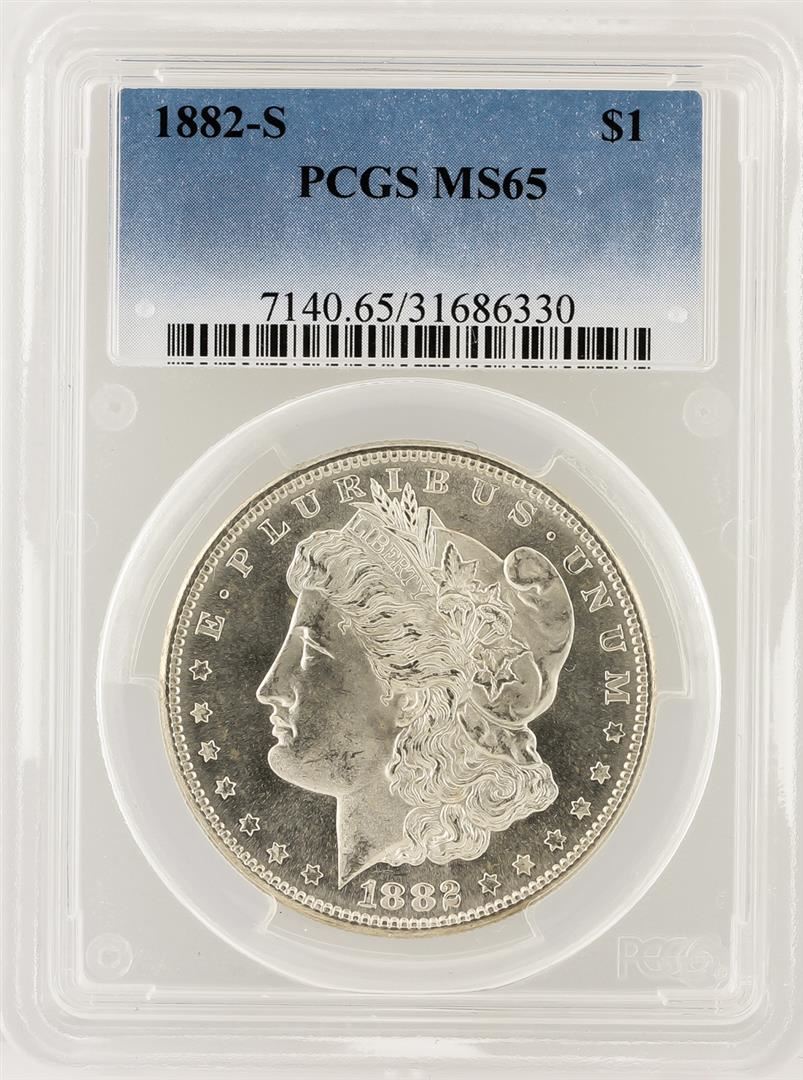 One 1882-S PCGS MS65 Morgan Silver Dollar. PCGS Certified.