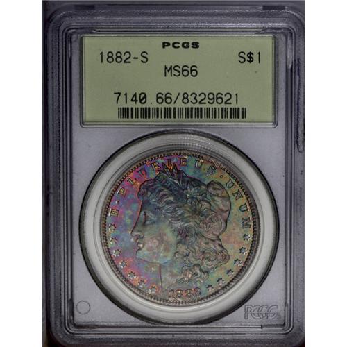 1882-S S$1 MS66 PCGS. Dynamic aquamarine, orange, and