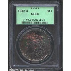 1882-S S$1 MS66 PCGS. The obverse has wonderfully deep waves of sea-green and violet patina. Lustrou