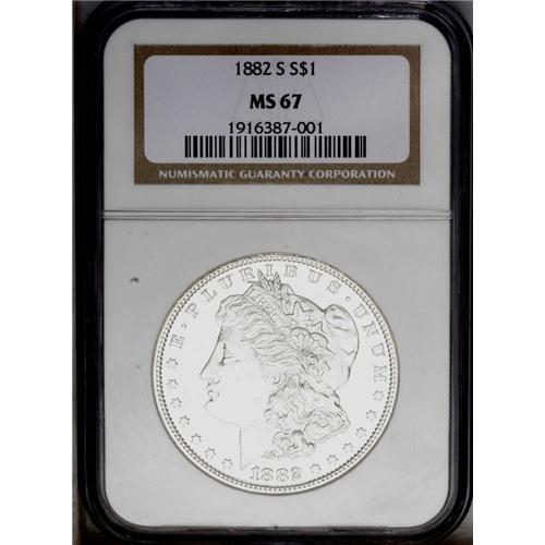 1882-S S$1 MS67 NGC. Sharply struck, including nice de