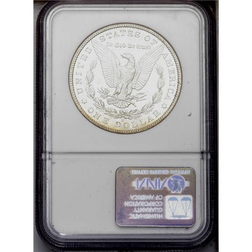<B>1882-S<img border='0' src='http://www.heritagecoins.com/images/star.gif' width=10 height=10>$1> MS67 NGC.</B></I> Well preserved surfaces are endowed with bright luster and waves of pastel cobalt-blue, lavender, and gold-brown along the upper left obverse quadrant, and gold at the lower reverse margin. The design elements are well brought up, with just minor softness apparent in the hair over Liberty's ear. Some luster grazes on the cap and in the left reverse field are mentioned for accuracy. NGC has certified 40 pieces finer (3/06). <BR><BR><B>Important notice:</B> Heritage usually auctions material at the rate of 200-250 lots per hour. On some occasions eBay Live bid software or the Internet may not be able to keep up with the pace of the auction. We recommend placing a realistic absentee bid now as insurance to avoid disappointment. Occasionally the auctioneer may eliminate or reject an eBay Live bid, and the auctioneer may also reopen a lot after the close of the eBay live bidding (usually because we missed an audience bid), and may reject your bid even if it shows you as the winning bidder. By bidding via eBay Live, you agree that Heritage may award the lot to another bidder at its sole discretion under the circumstances described above or any other reasonable circumstances. Since eBay bids are not shown to us until we open the lot on the floor, we treat those bids just like floor bids. In most cases the floor responds before the eBay bid is presented to us, due to Internet lag time, so for consistency we have made it a policy that floor bids are always considered first over tie eBay live bids. Also please note that all Heritage lots purchased through eBay Live carry a 20% Buyer's Premium. Please make sure you read the Terms and Conditions before you bid. This lot is being auctioned in conjunction with a live floor auction by Heritage Galleries & Auctioneers. All final auction and invoice information will be supplied by Heritage Galleries & Auctioneers, and all other information should be considered preliminary. Lot:3354 <BR><BR><B>Winning Notification and Billing:</B> After the FINAL session in this auction is complete, Heritage will send e-mail and snail mail invoices. This process normally takes several days. All final auction and invoice information will be supplied by Heritage Galleries & Auctioneers, and all other information should be considered preliminary. <BR><BR>This auction will be conducted on a live auction floor and over the Internet through eBay Live. If you choose to place an absentee bid, please take a moment to <font color='#0000ff'><u><a href='http://pages.ebay.com/liveauctions/help/before/laabsentee.html'>learn how eBay Live absentee bidding works</a></u></font><font color='#000000'>