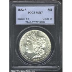1882-S S$1 MS67 PCGS. A well struck Gem with clean virtually distraction free fields. The surfaces s