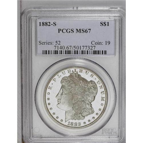 1882-S S$1 MS67 PCGS. Crisply struck and untoned, with 1882-S[img border='0' src='http://www.heritag