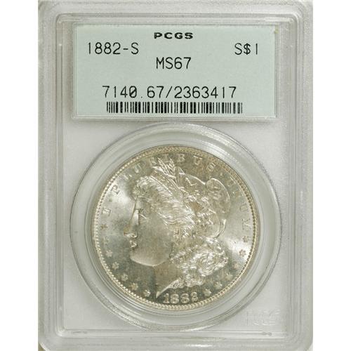 1882-S S$1 MS67 PCGS. Housed in an older green-label P