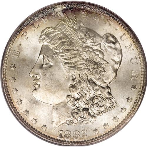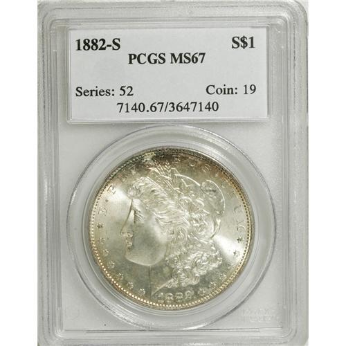 1882-S S$1 MS67 PCGS. Many examples of the 1882-S have
