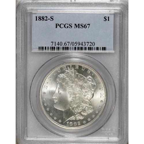 1882-S S$1 MS67 PCGS. This pinpoint-sharp silver dolla
