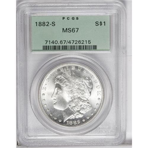 1882-S S$1 MS67 PCGS. This razor-sharp Superb Gem has