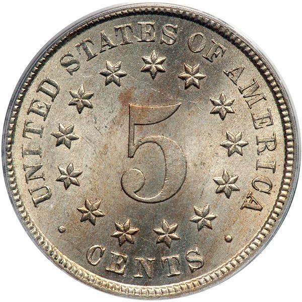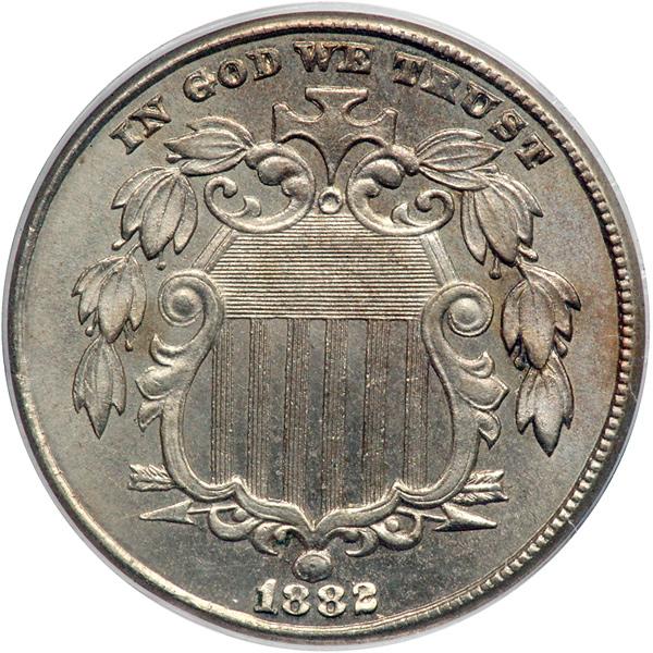 1882 Shield Nickel. PCGS graded MS-64. Lightly toned and well struck (PCGS # 3812) .