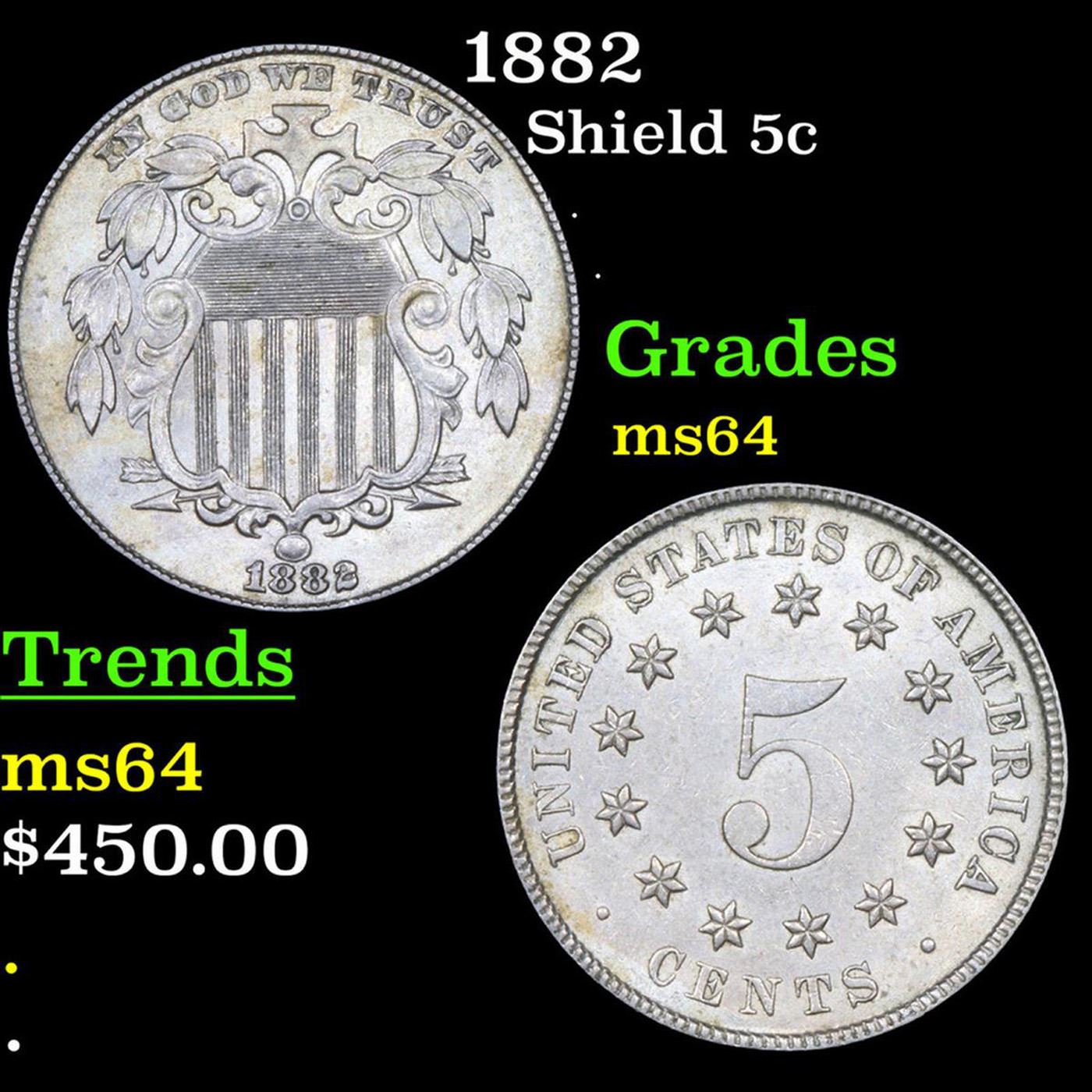 1882 Shield Nickel 5c Graded ms64 By SEGS. A Key Date's Pick, Bid to Win, Don't let it get Away Coin