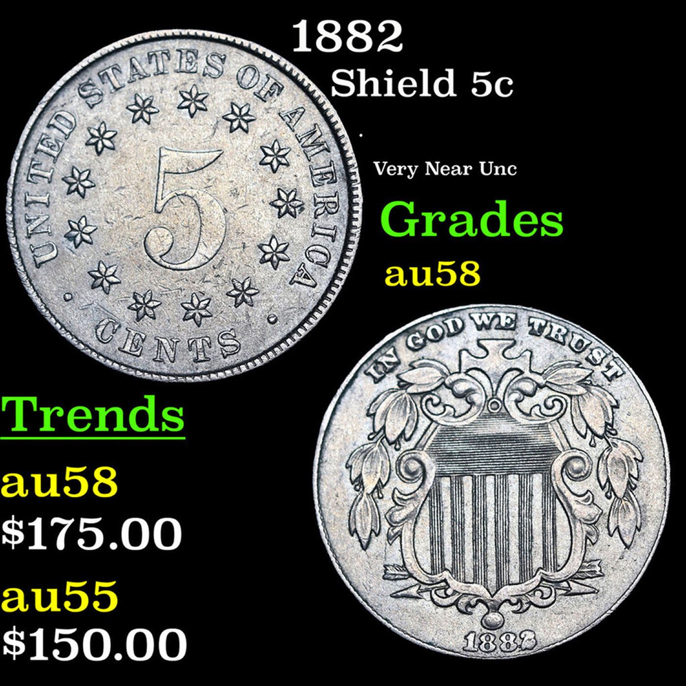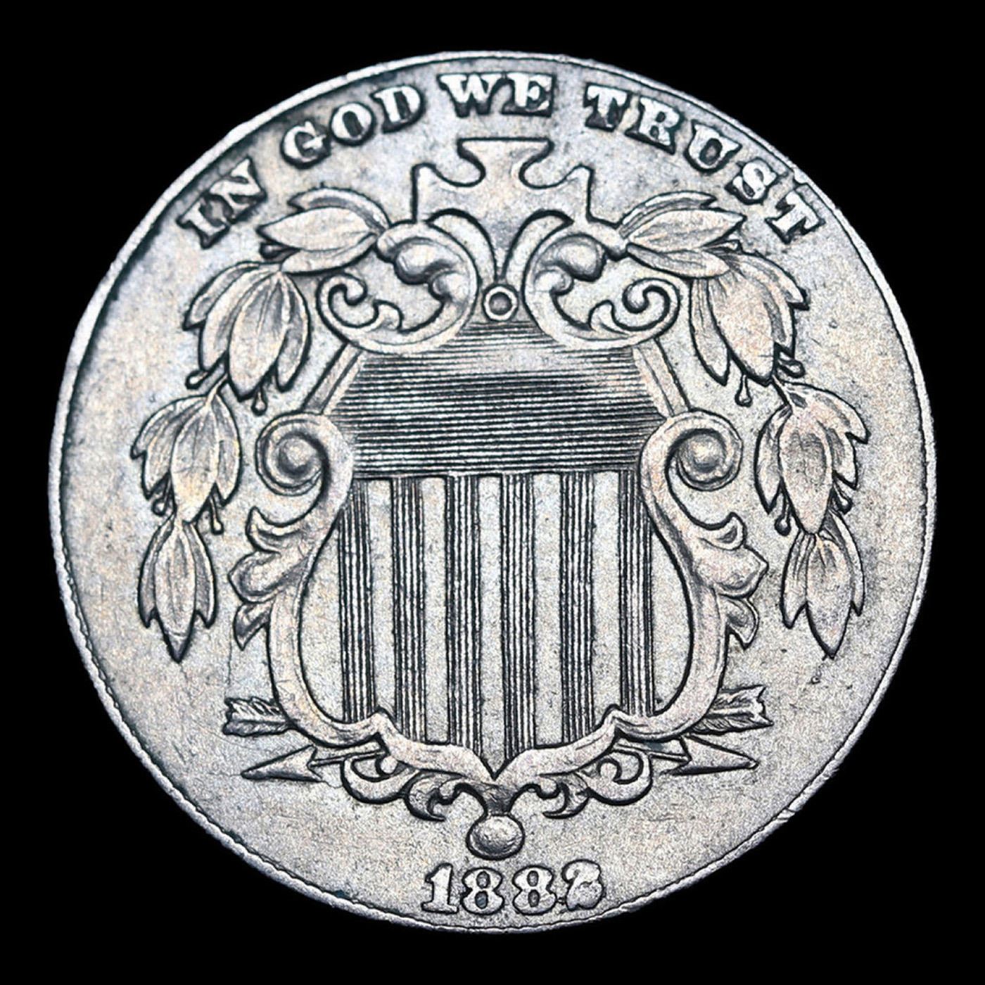 1882 Shield Nickel 5c Grades Choice AU/BU Slider.
