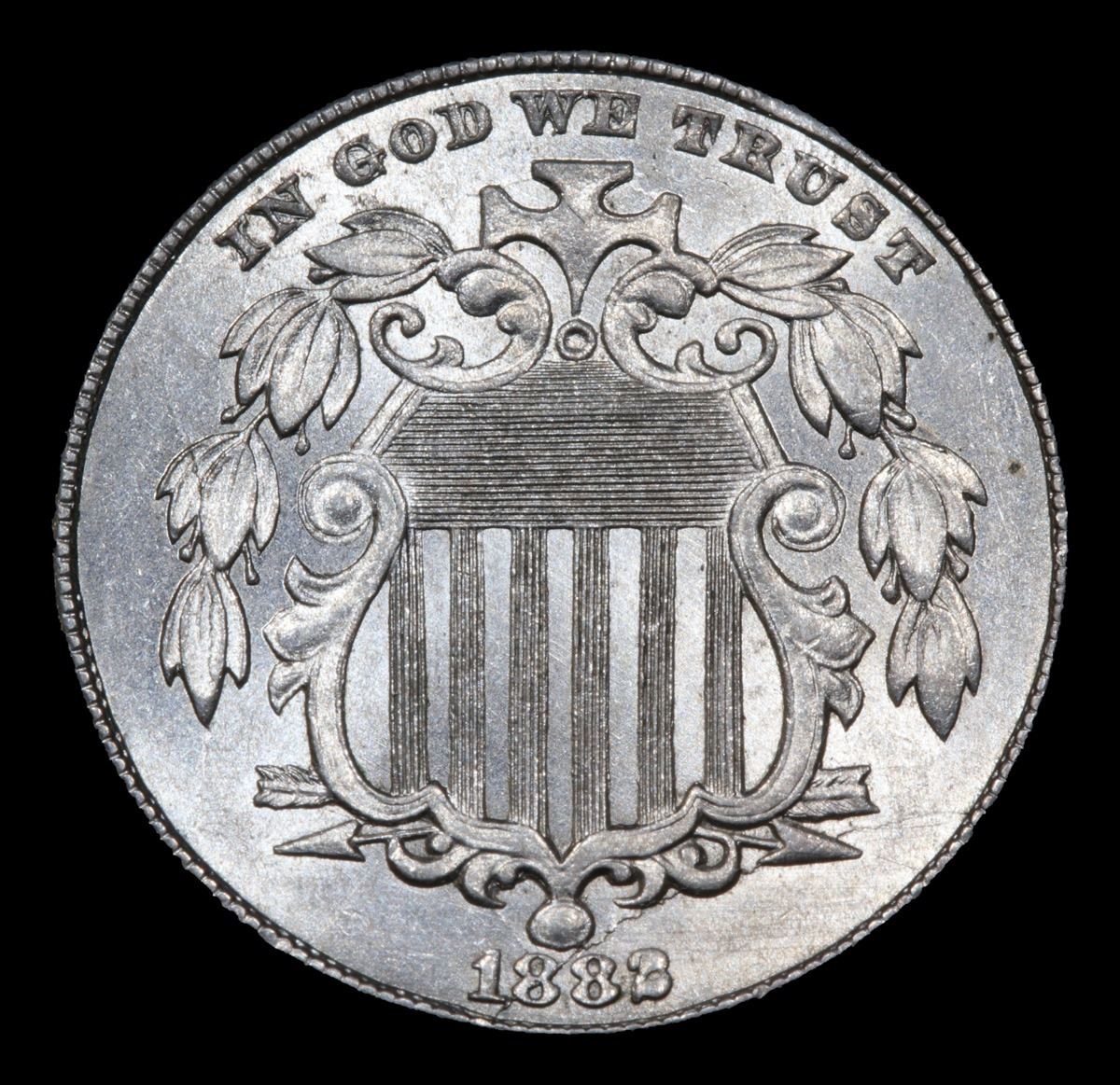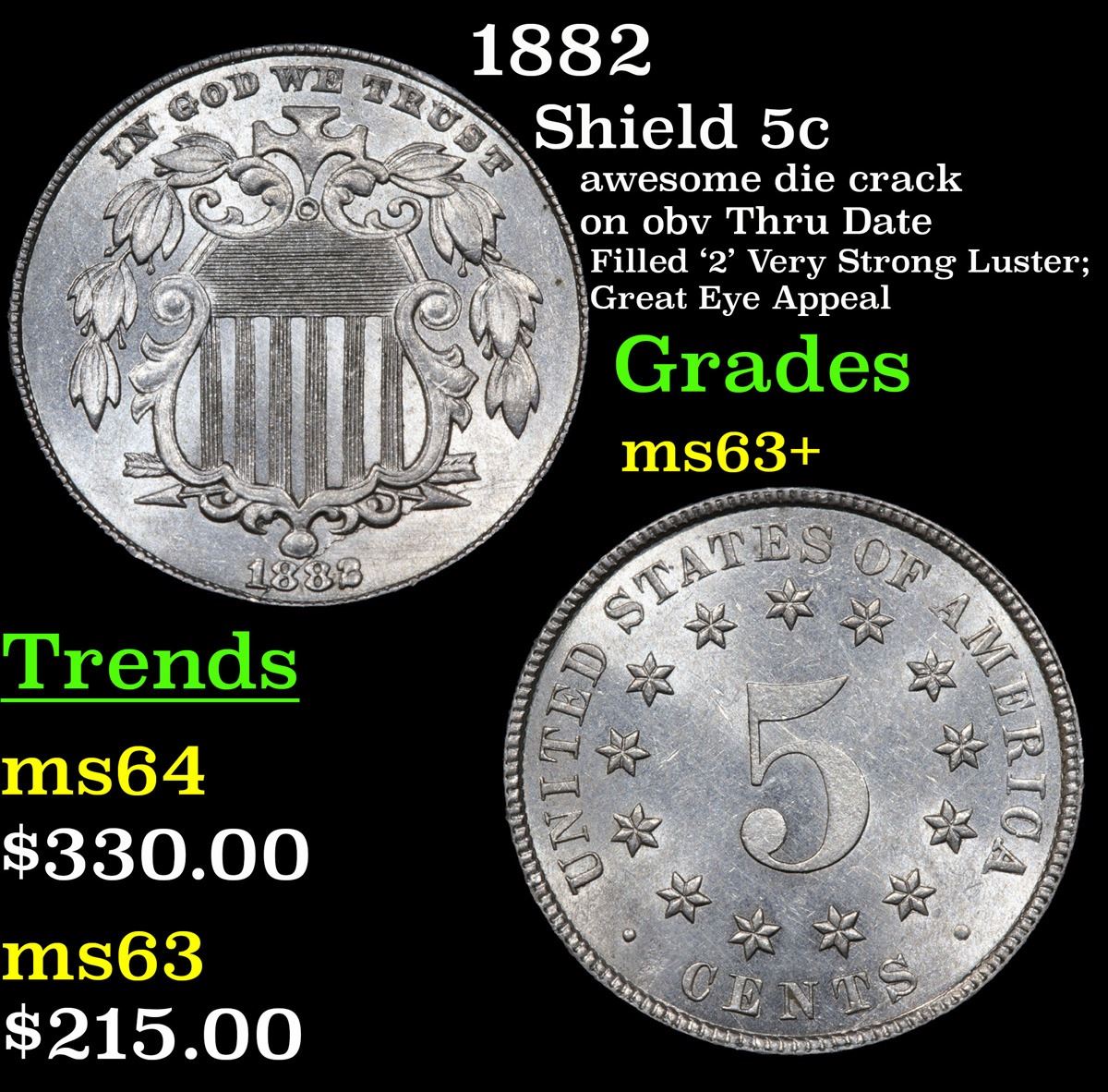 1882 awesome die crack on obv Thru Date Filled '2' Very Strong Luster; Great Eye Appeal Shield Nickel 5c Grades Select+ Unc.