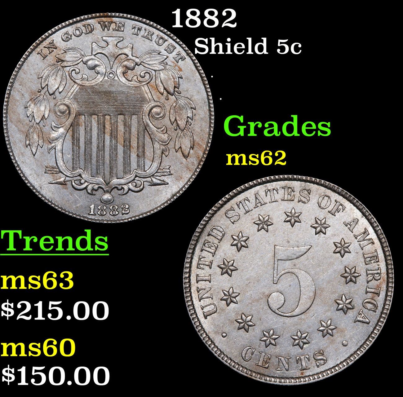 1882 . . Shield Nickel 5c Grades Select Unc.
