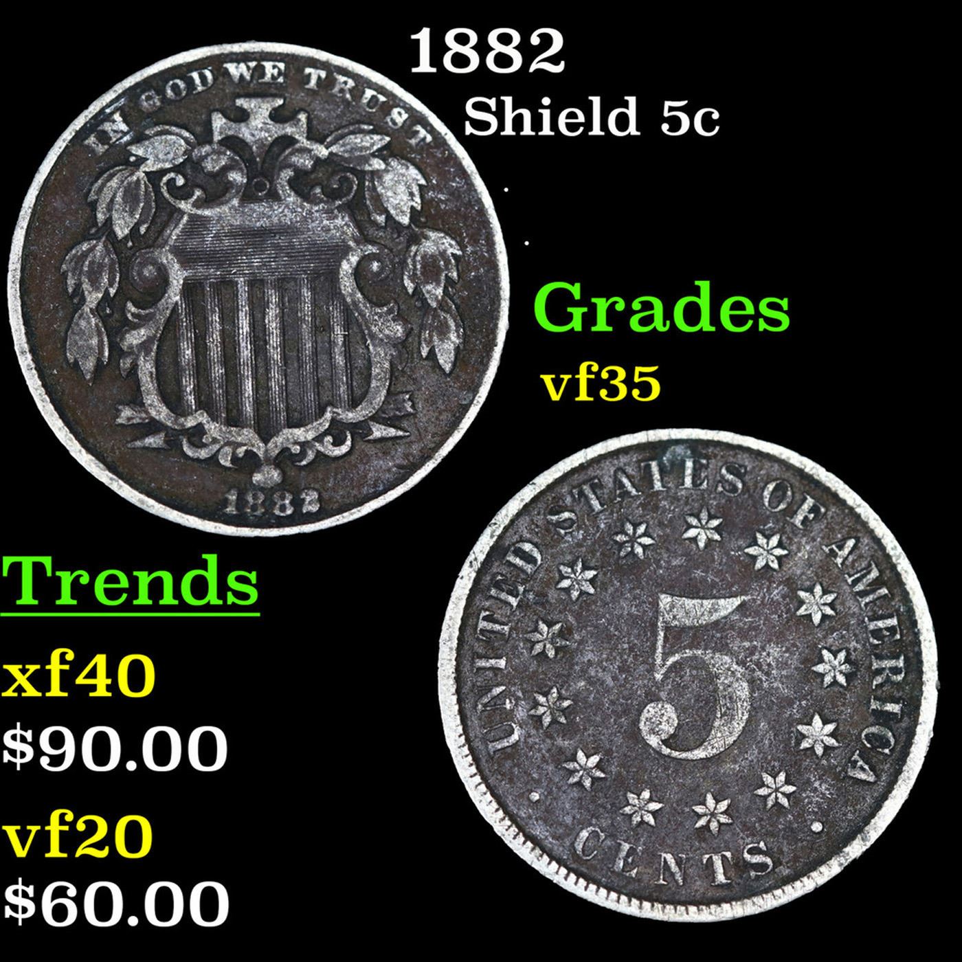 1882 Shield Nickel 5c Grades vf++.