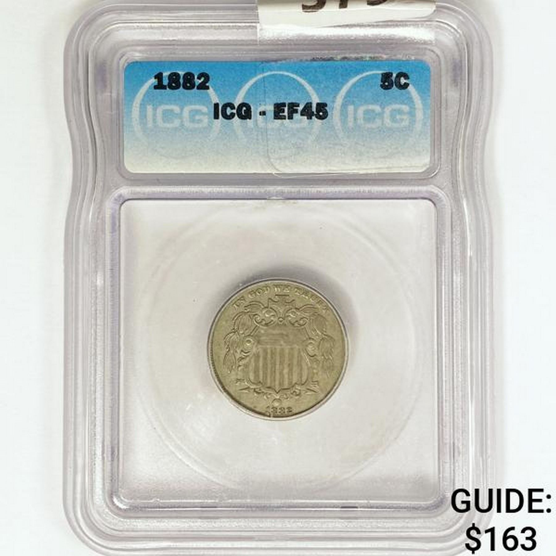 1882 Shield Nickel ICG EF45