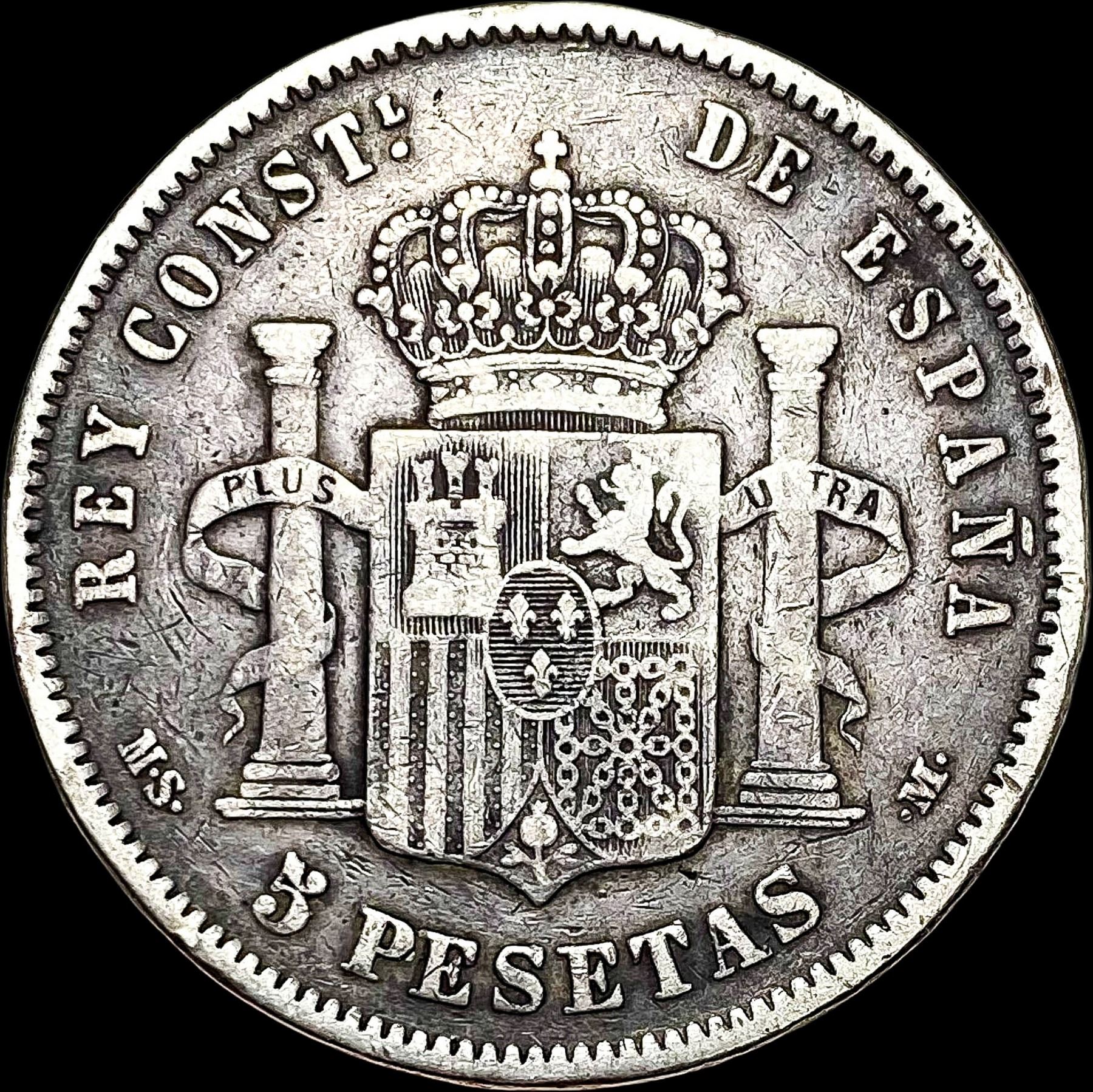 1882 Spain Alfonso XII Silver 5 Peseta NEARLY UNCIRCULATED
