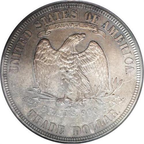 <B>1882 T$1 PR63 PCGS.</B></I> This is a lovely proof trade dollar with sharp design details and hints of cameo contrast. The obverse has light gray color and the reverse is toned deeper grayish-brown. A few grade-consistent hairlines are visible but insignificant. The auction should provide an opportunity to balance quality and price.<BR><BR><B>Coin Engraver:</B> William Barber<BR><BR><b>Shipping:</b> Coins & Currency (<a target="_blank" href="http://www.heritageauctions.com/common/shipping.php">view shipping information</a>)