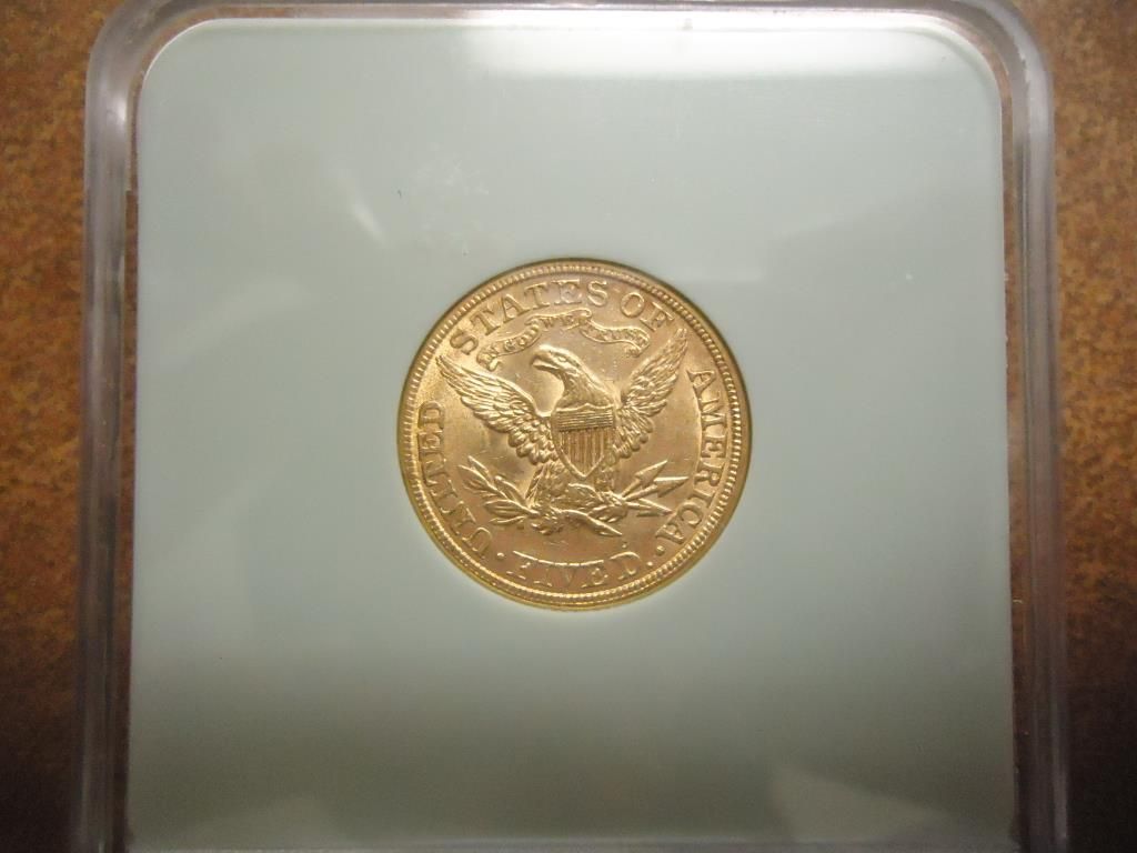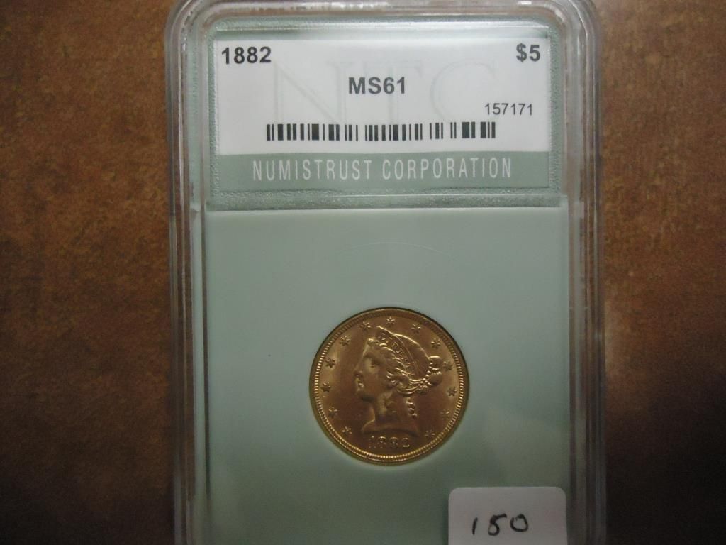 1882 US GOLD $5 HALF EAGLE LIBERTY NTC MS61