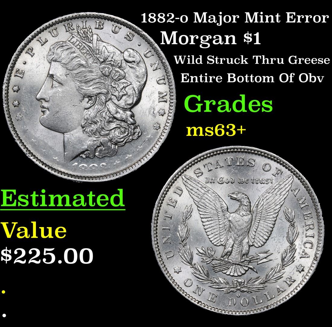 1882-o Major Mint Error Wild Struck Thru Greese Entire Bottom Of Obv Morgan Dollar $1 Grades Select+ Unc. Major Design Elements Destroyed
