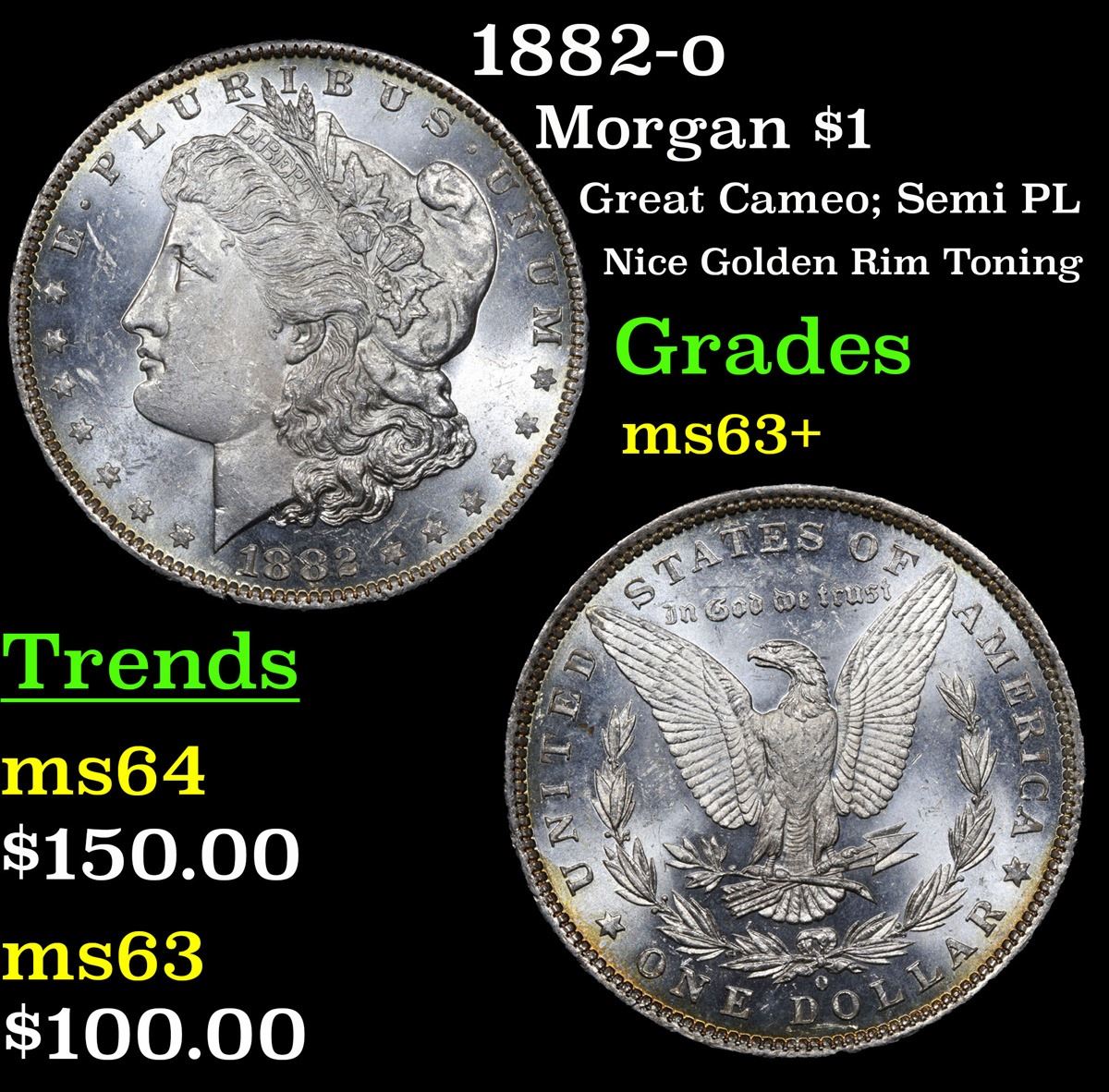 1882-o Great Cameo; Semi PL Nice Golden Rim Toning Morgan Dollar $1 Grades Select+ Unc.