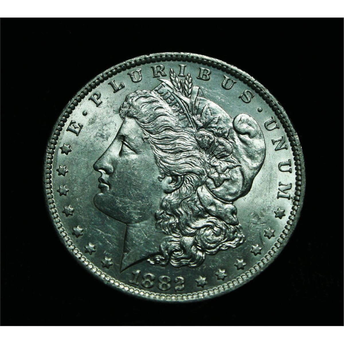 Blast White, Good Strike, superior luster and a very pleasing look. A Great example of this scarce Variety. The 1882-o/s is not only a TOP 100 Variety, but it is a coin in its own right with a separate line in the Greysheet and all other guides. The 1882-o/s and the 1900-o/cc are generally accepted as needed to complete a Morgan Dollar Set. The Wholesale Greysheet lists ms63 at $630. Estimated Value $700