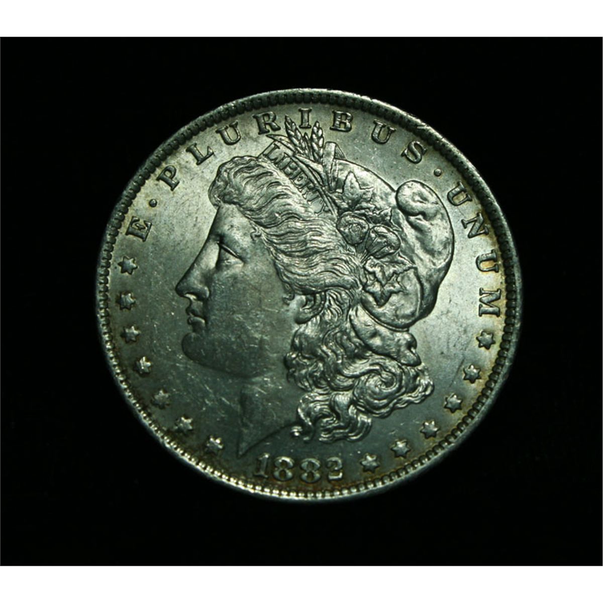 Lightly Toned, Good Strike, and a very pleasing look. A Great example of this scarce Variety. The 1882-o/s is not only a TOP 100 Variety, but it is a coin in its own right with a separate line in the Greysheet and all other guides. The 1882-o/s and the 1900-o/cc are generally accepted as needed to complete a Morgan Dollar Set. I will offer my personal buy back guarantee, that this coin is all original and will not come back Ungradeable by any major grading service. Coin World's Coin Values lists ms63 at $1700 and The Wholesale Greysheet lists ms63 at $630. Estimated Value $750