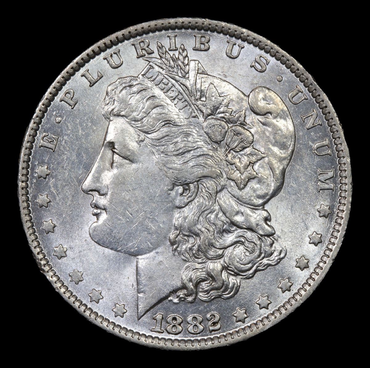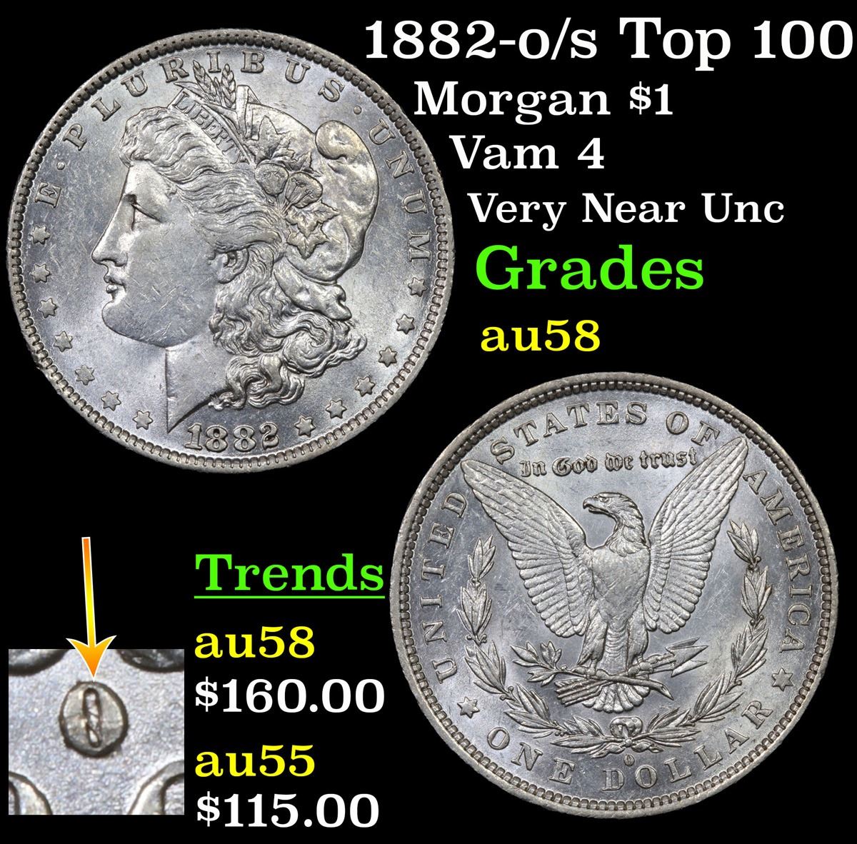 1882-o/s Top 100 Vam 4 Very Near Unc Morgan Dollar $1 Grades Choice AU/BU Slider.