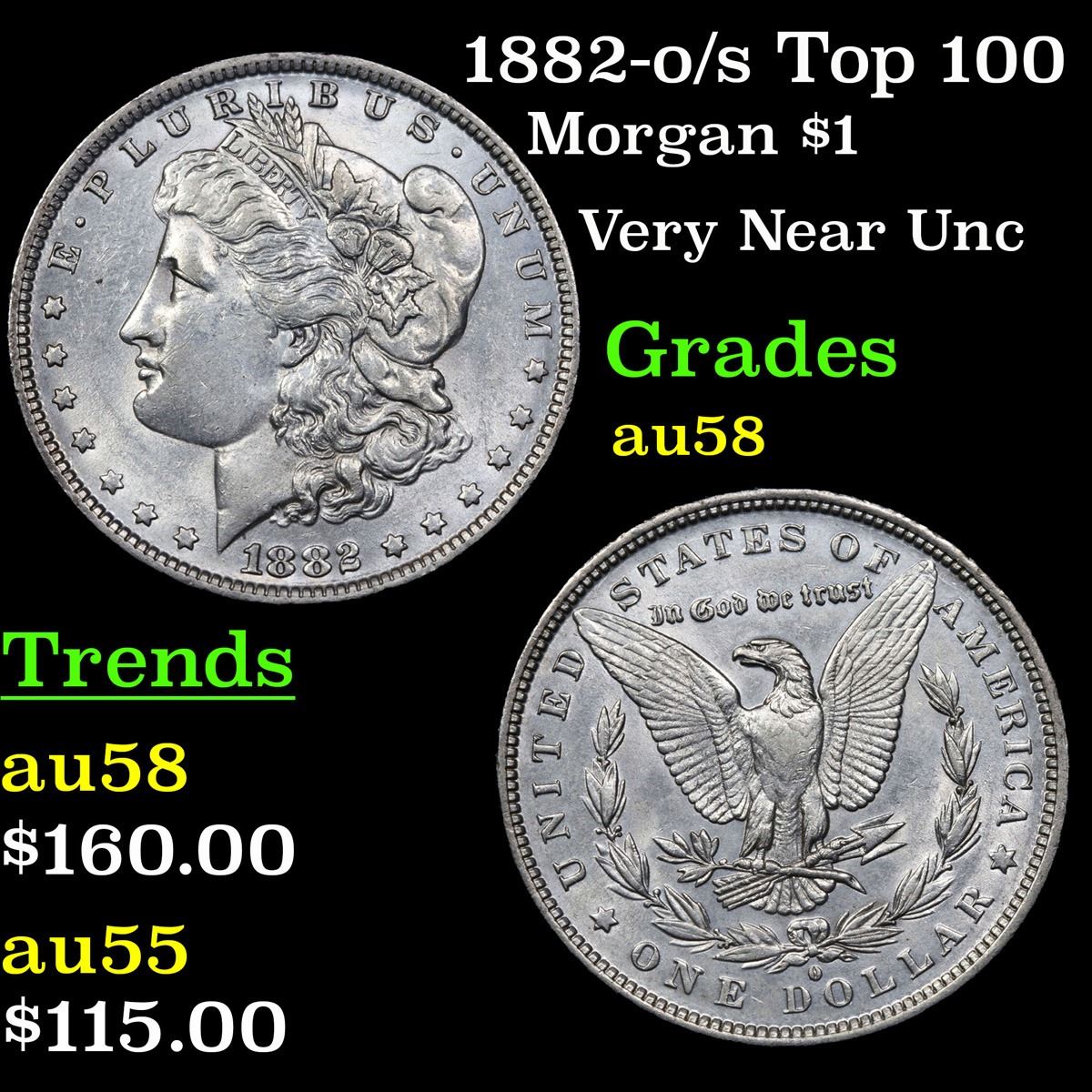 1882-o/s Top 100 . Very Near Unc Morgan Dollar $1 Grades Choice AU/BU Slider.