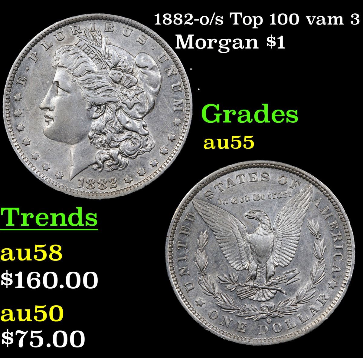 1882-o/s Top 100 vam 3 Morgan Dollar $1 Grades Choice AU.