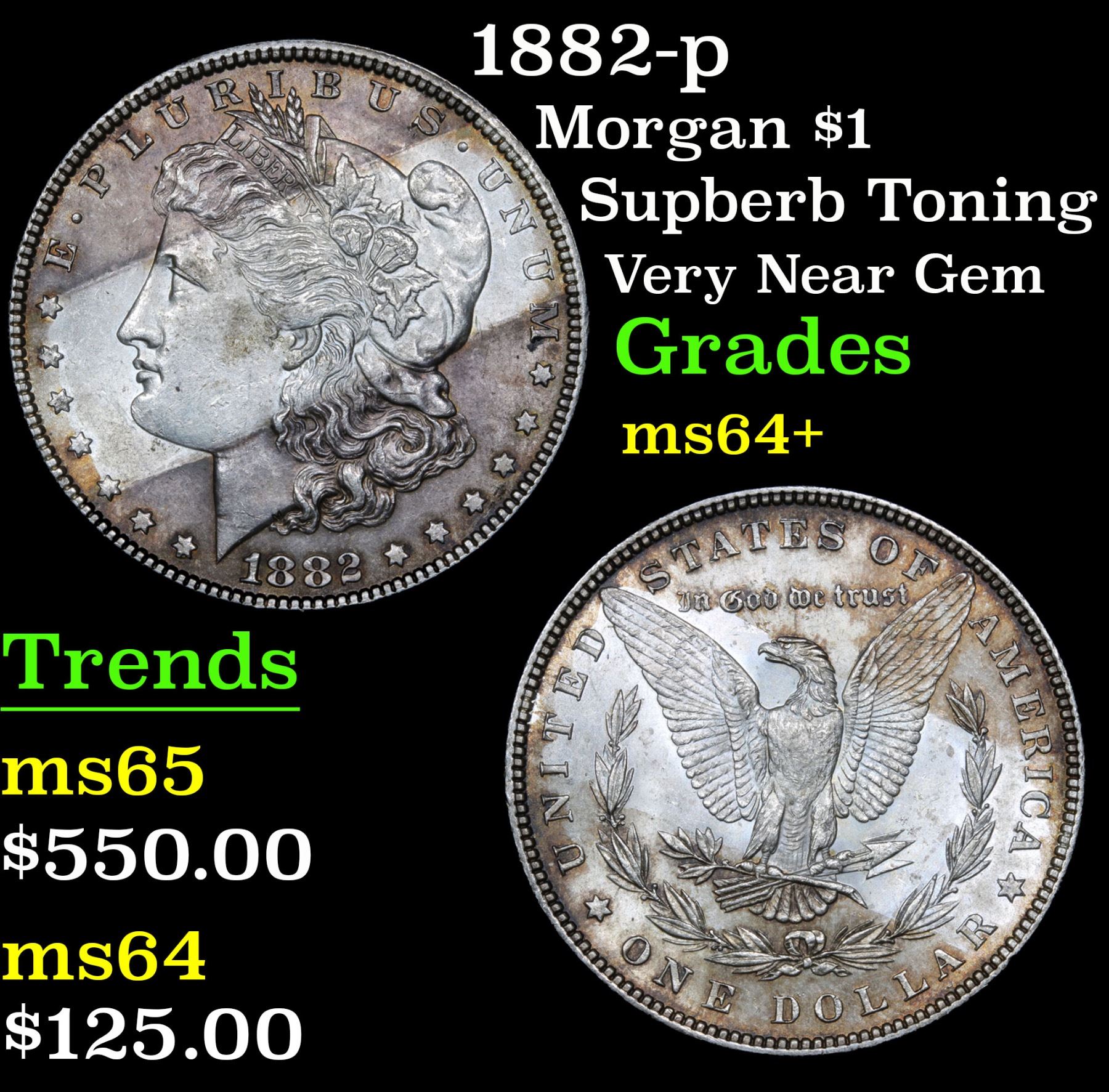 1882-p Morgan Dollar $1 Grades Choice+ Unc. Supberb Toning Very Near Gem A Corey's Pick, Bid to Win, Don't let it get Away Coin