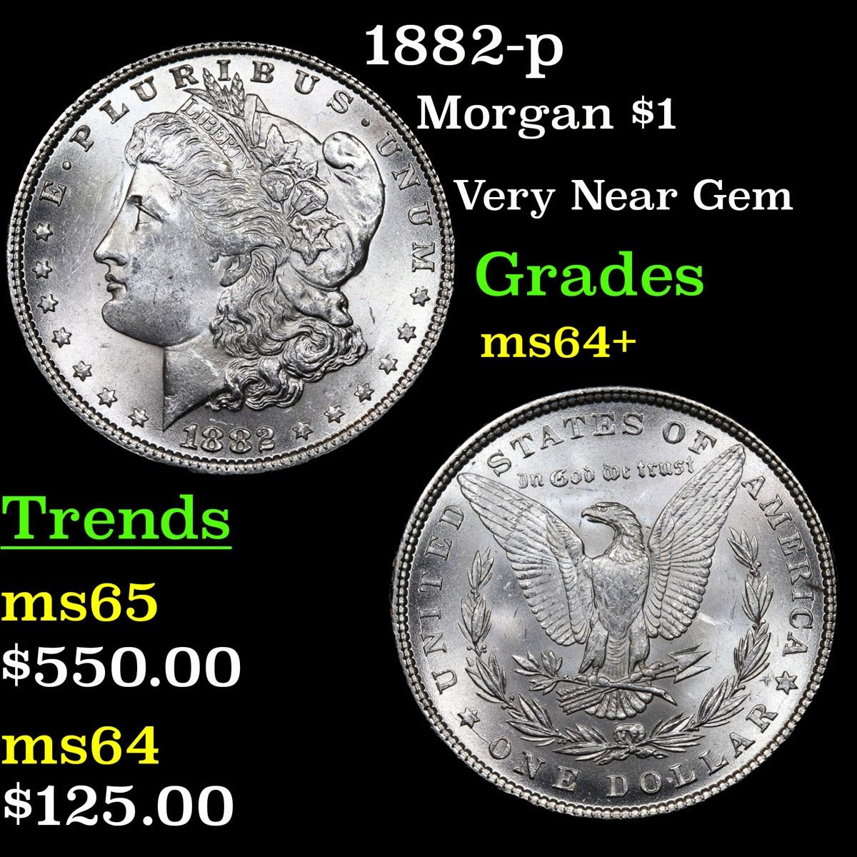 1882-p . Very Near Gem Morgan Dollar $1 Grades Choice+ Unc.
