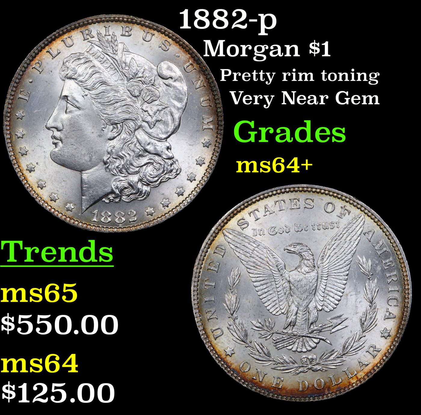 1882-p Morgan Dollar $1 Grades Choice+ Unc.