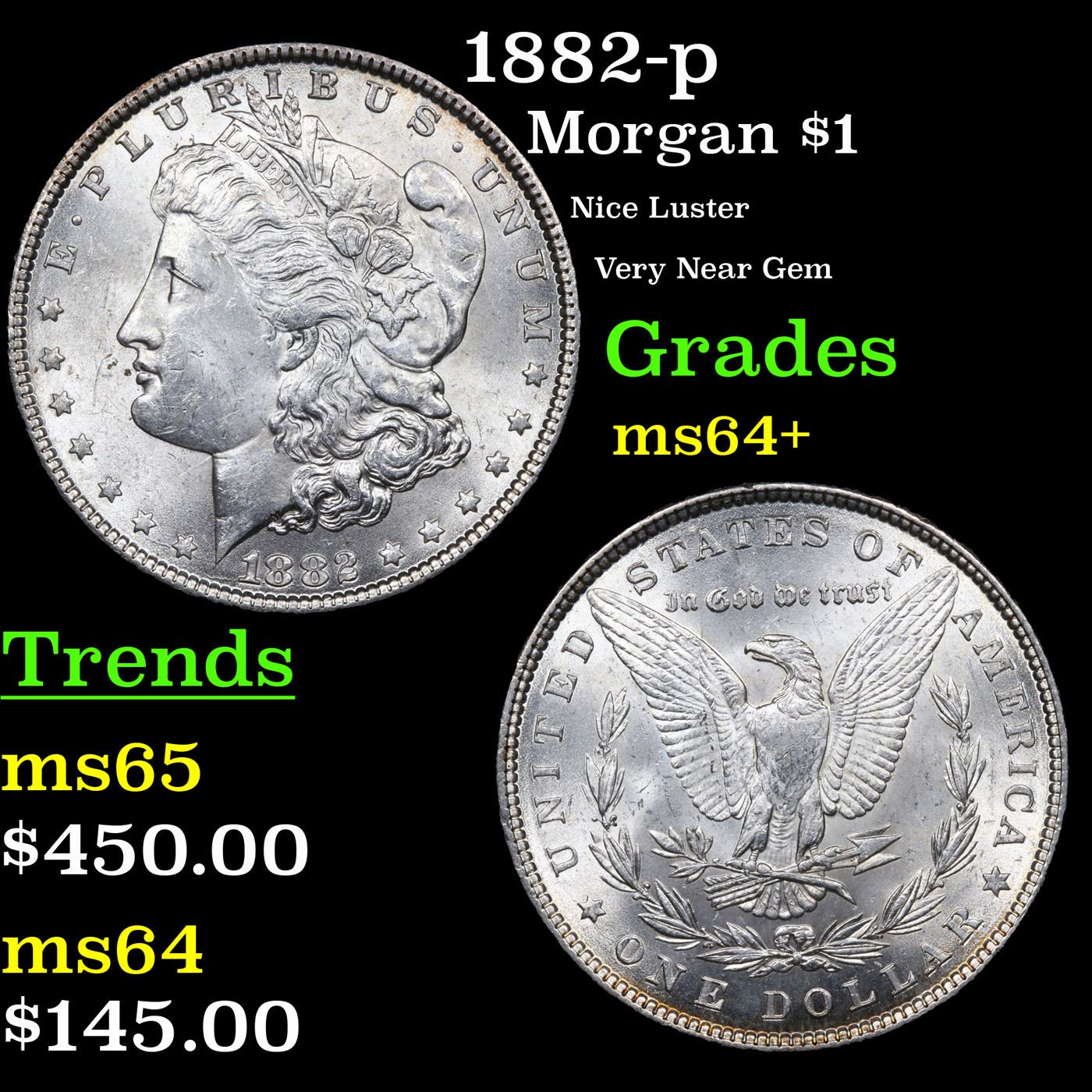 1882-p Morgan Dollar $1 Grades Choice+ Unc.
