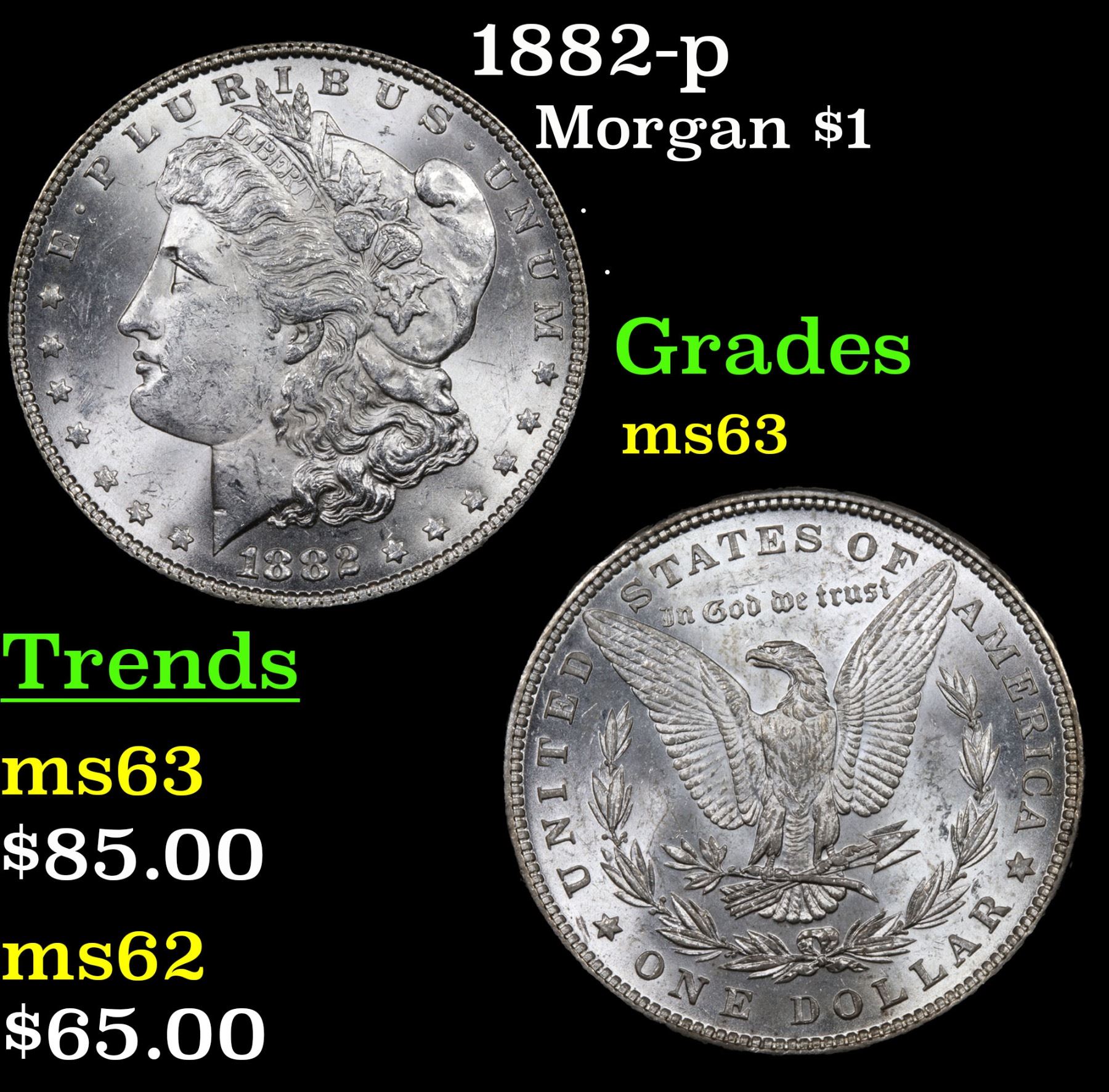 1882-p Morgan Dollar $1 Grades Select Unc.